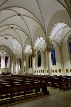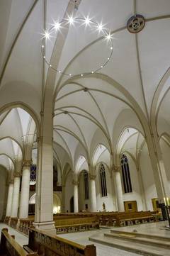 Die neue Kirchenbeleuchtung durch LED-Ringkronen den langen Weg durch alle Instanzen gemacht, ist genehmigt und installiert. Pater Tobias, der sich zur Zeit in Berlin aufhält, übermittelt mit fröhlichen Grüßen neue Fotos. Ein Industriefotograf der Beleuchtungsfirma stellte sie zur Verfügung.